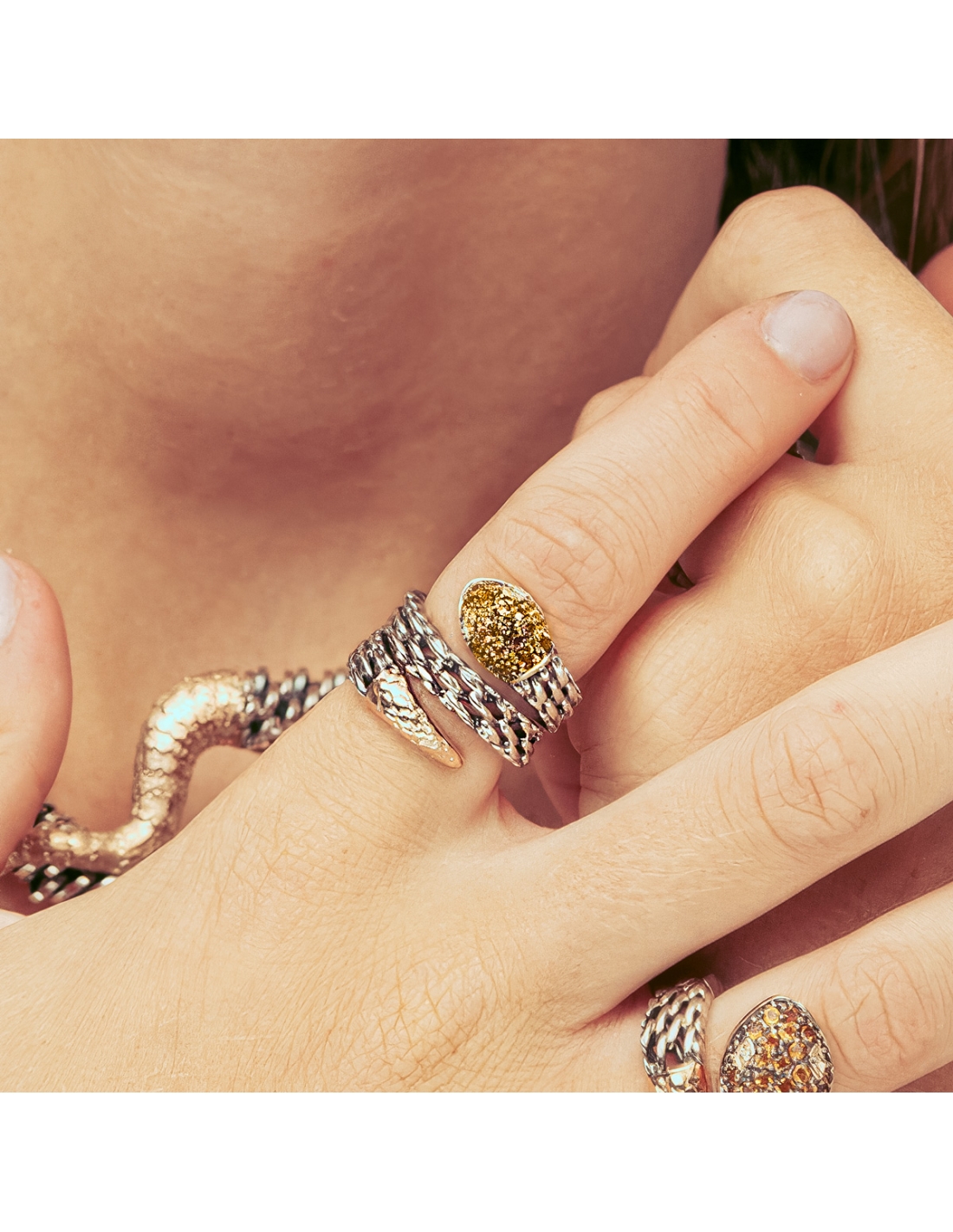 Necklaces handmade in Italy by the de 'Nobili artisans, in 925 silver and 9kt rose gold with quartz fumes and emeralds .