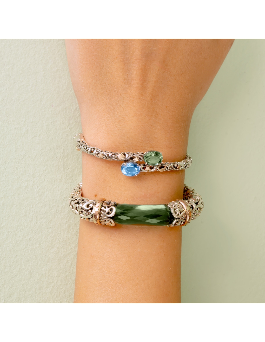Ring handmade in Italy by the de 'Nobili artisans, in 925 silver and 9kt rose gold with quarz idrotermal yellow.