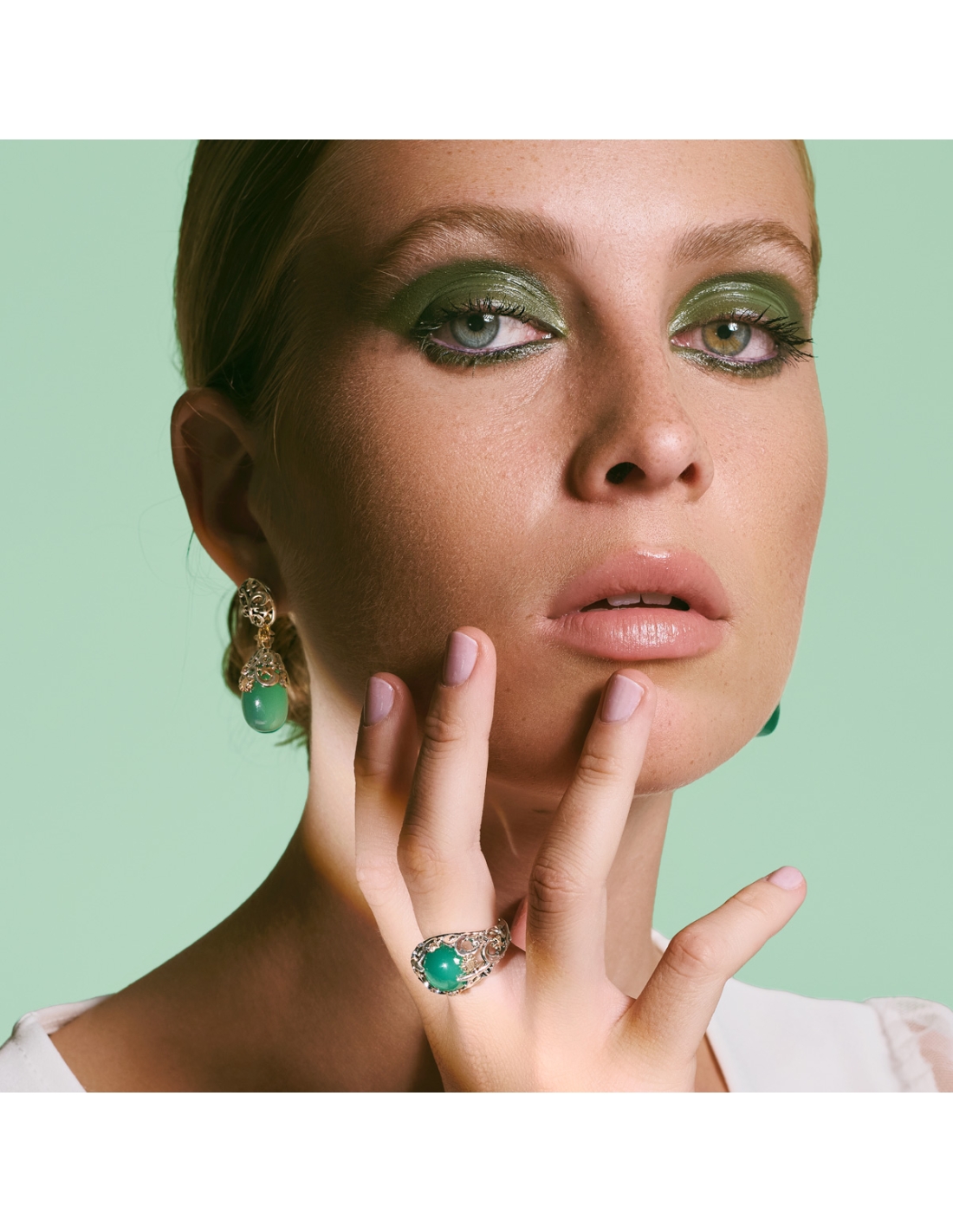 Ring handmade in Italy by the de'Nobili artisans, in 925 silver and 9kt rose gold with quarz idrotermal light blue.