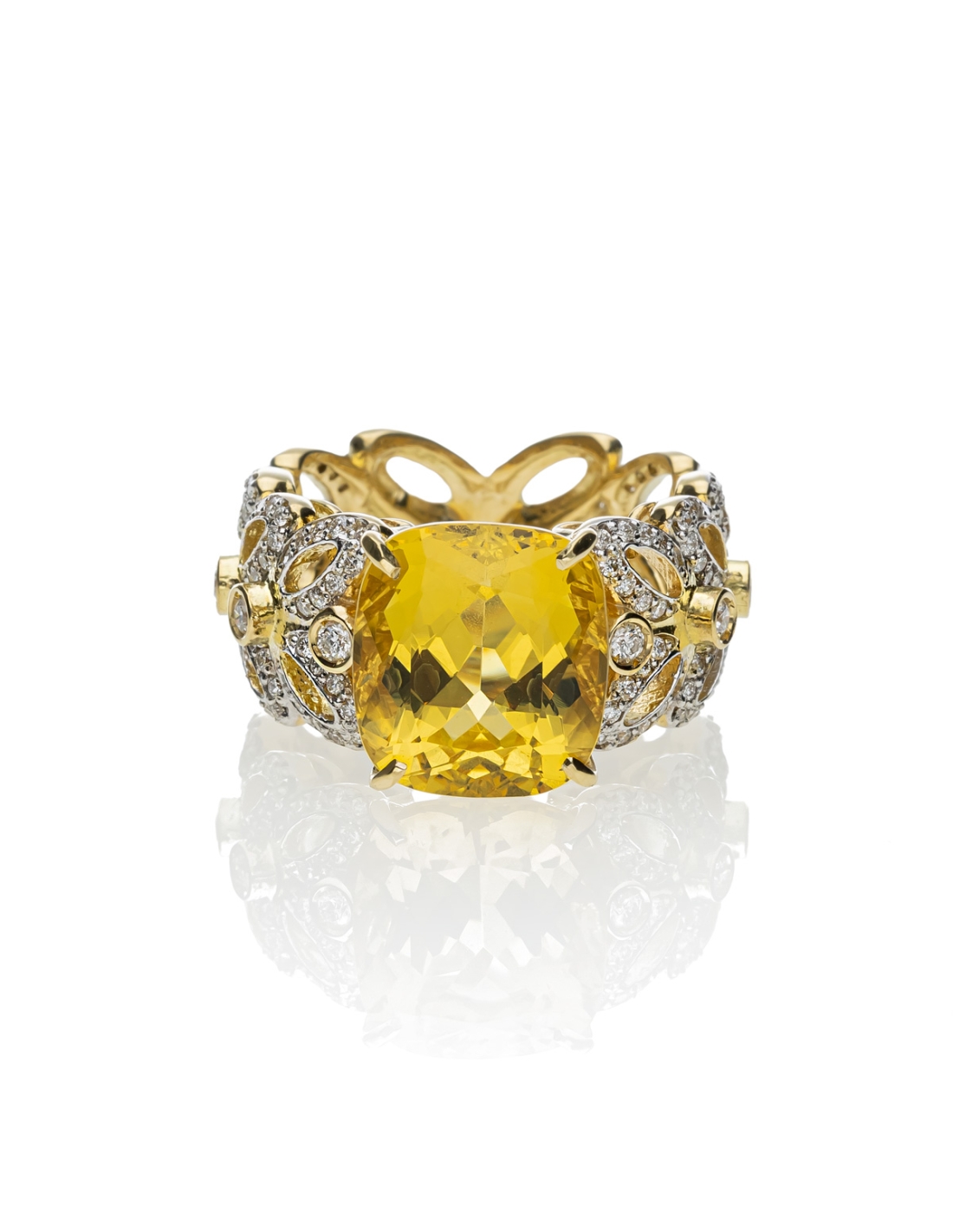Handmade ring, exclusively in the de 'Nobili laboratory, in 18kt white and yellow gold with F-VVS quality brilliant cut diamonds.