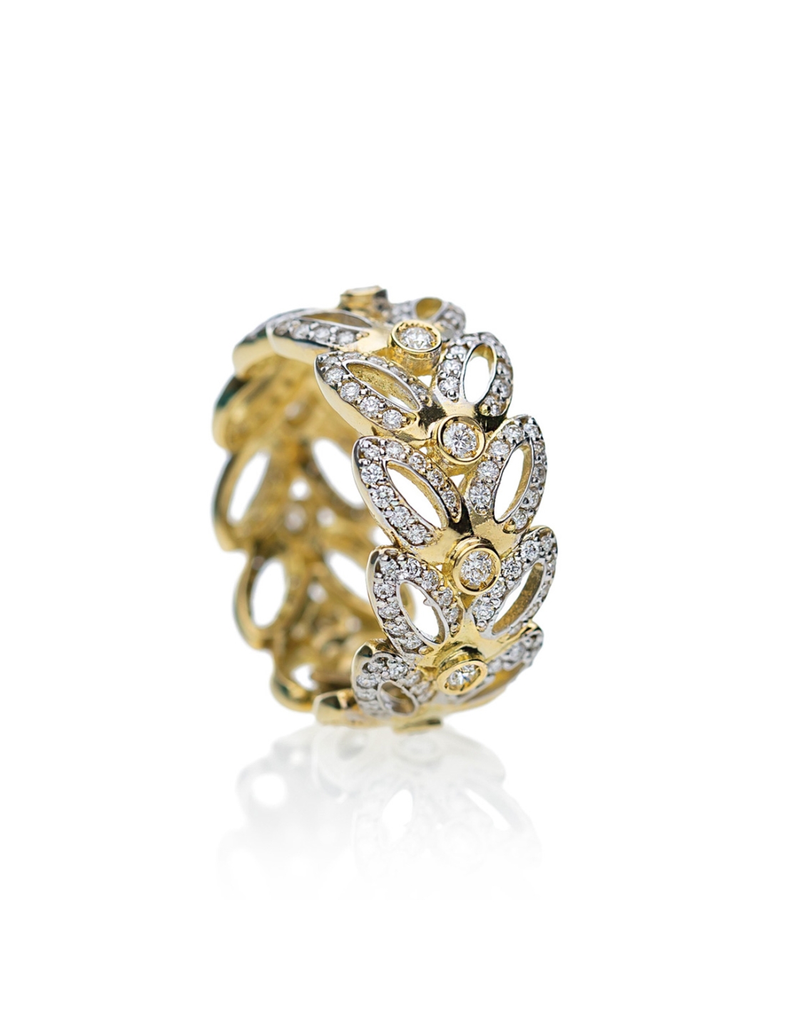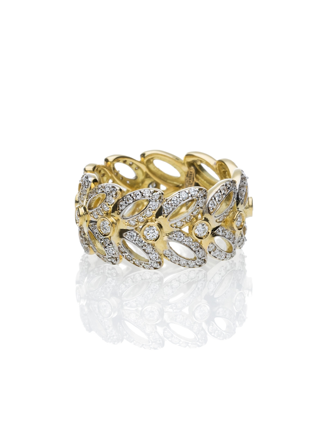 Handmade ring, exclusively in the de 'Nobili laboratory, in 18kt white and yellow gold with F-VVS quality brilliant cut diamonds.
