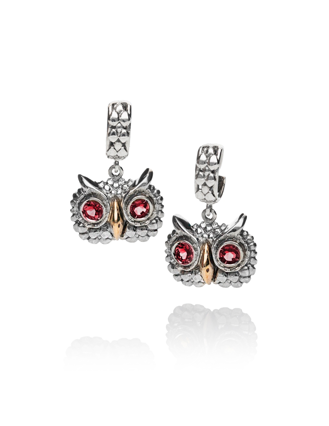 Earrings handmade in Italy by the de 'Nobili artisans, in 925 silver and 9kt gold with cabochon garnet.