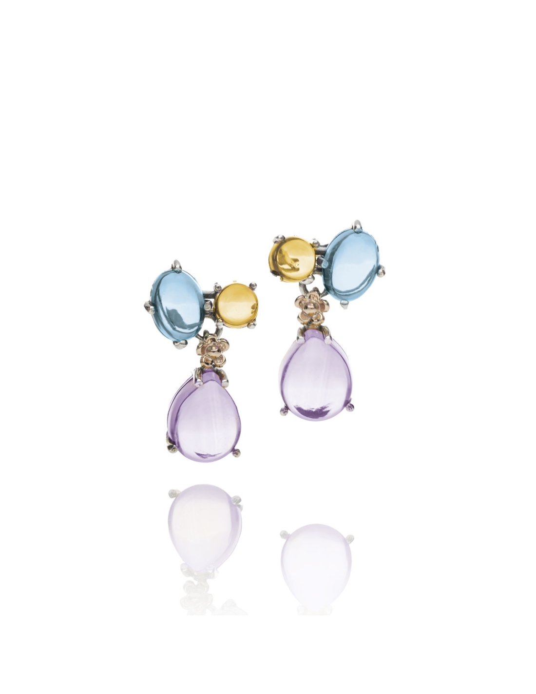 Earrings handmade in Italy by the de 'Nobili artisans, in 925 silver and 9kt gold with idrotermali quartz.