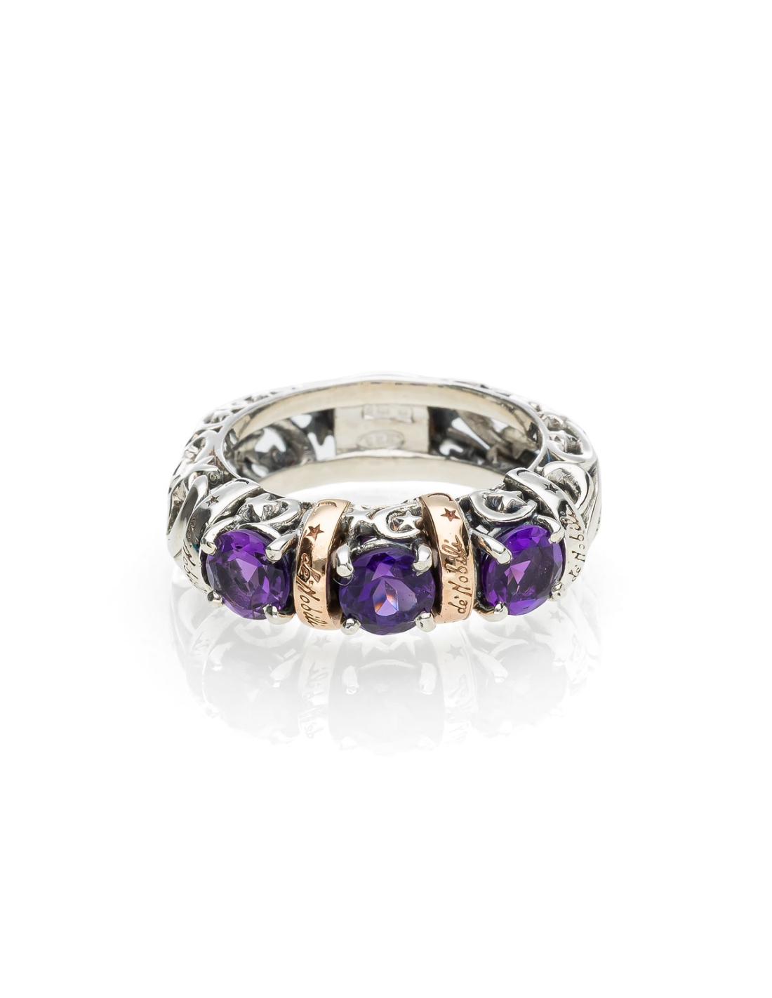 Ring handmade in Italy by the de 'Nobili artisans, in 925 silver and 9kt rose gold with quarz idrotermal yellow.