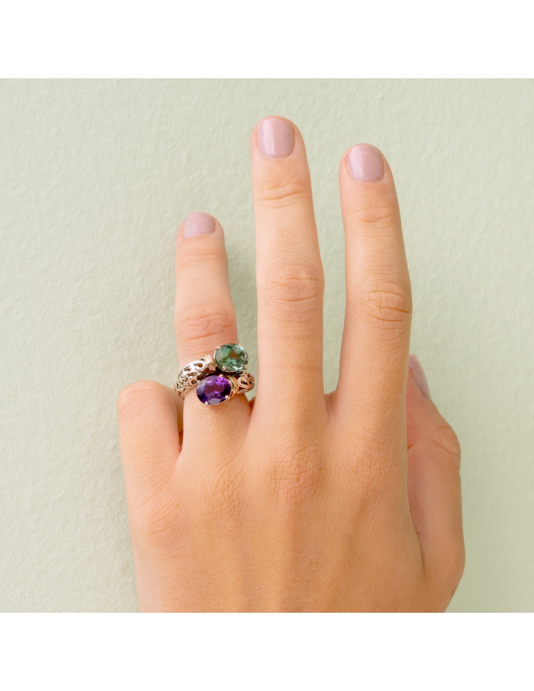 Ring handmade in Italy by the de 'Nobili artisans, in 925 silver and 9kt rose gold with quarz idrotermal yellow.