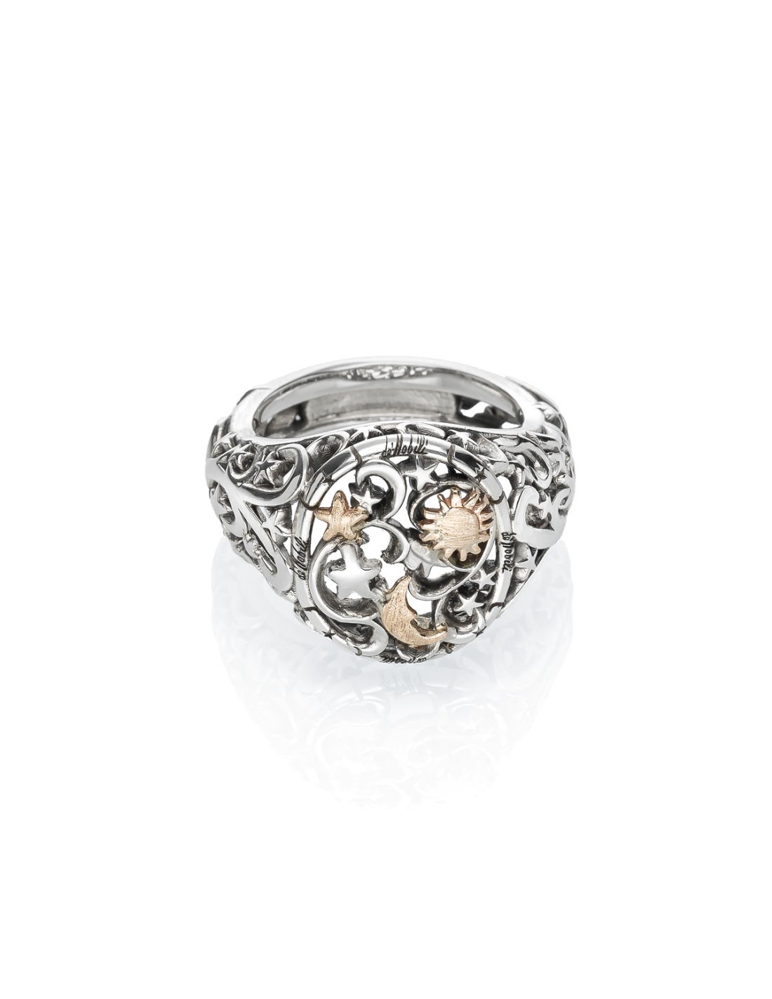 Anello realizzato a mano, esclusivamente nel laboratorio de' Nobili, in argento 925 e oro rosa 9kt.