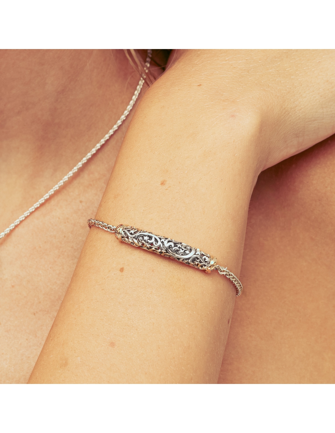Bracciale realizzato a mano, esclusivamente nel laboratorio de' Nobili, in argento 925 e nomi in oro rosa 9kt.