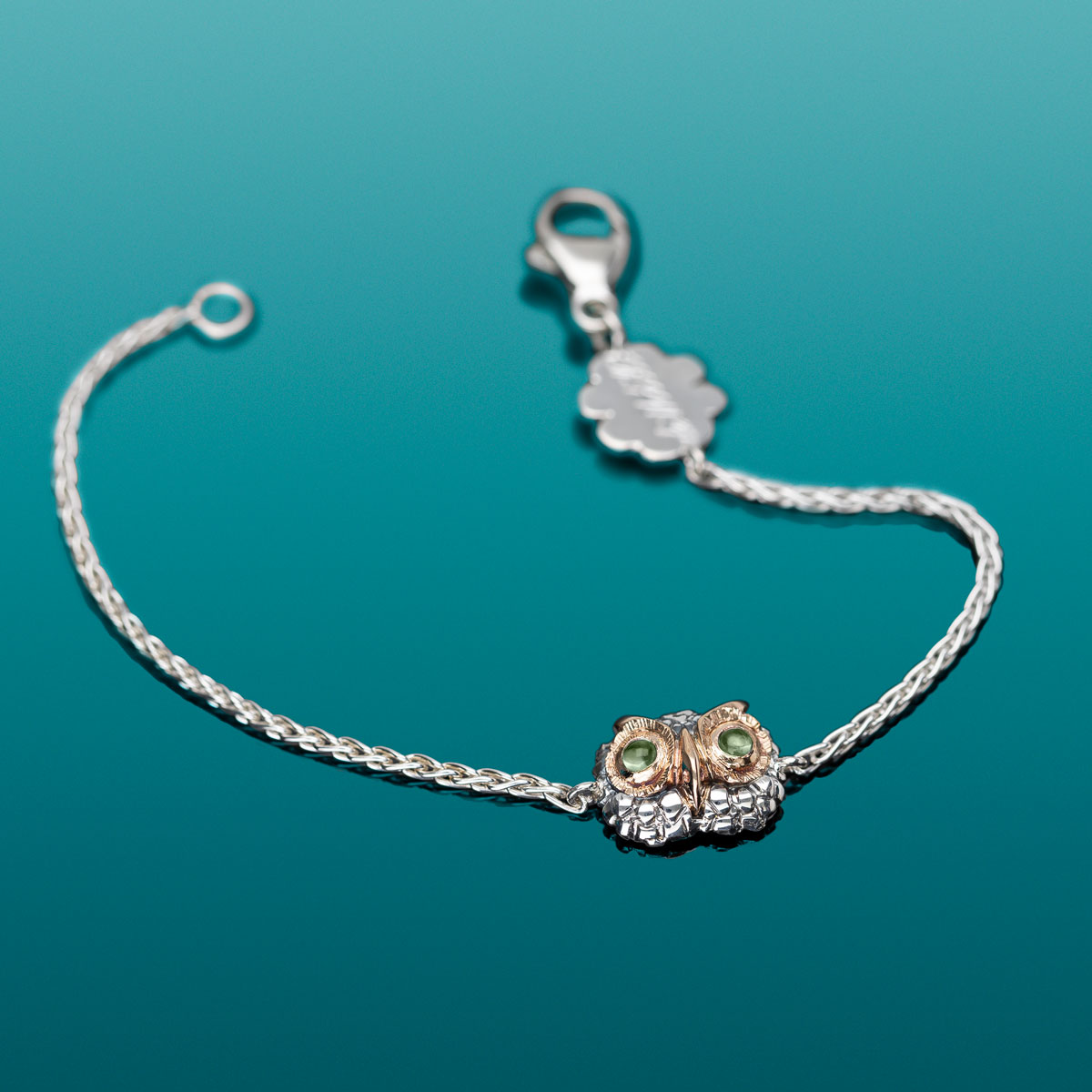 Bracciale in argento e oro rosa 9kt con semipreziosi: gialli, viola, azzurro, verde, fumè.