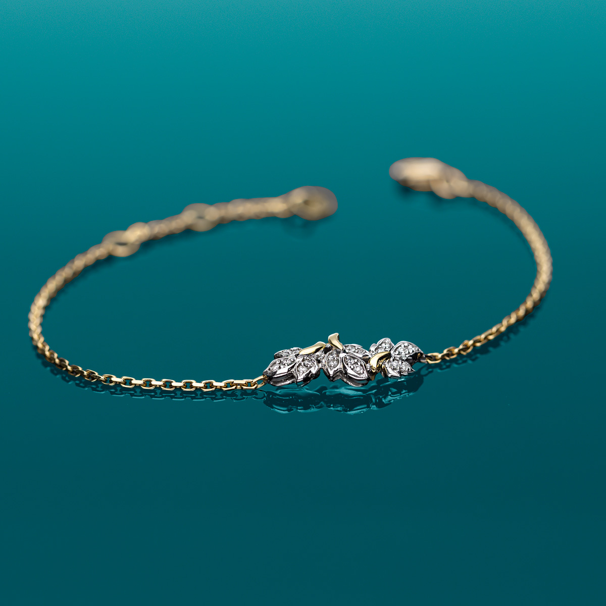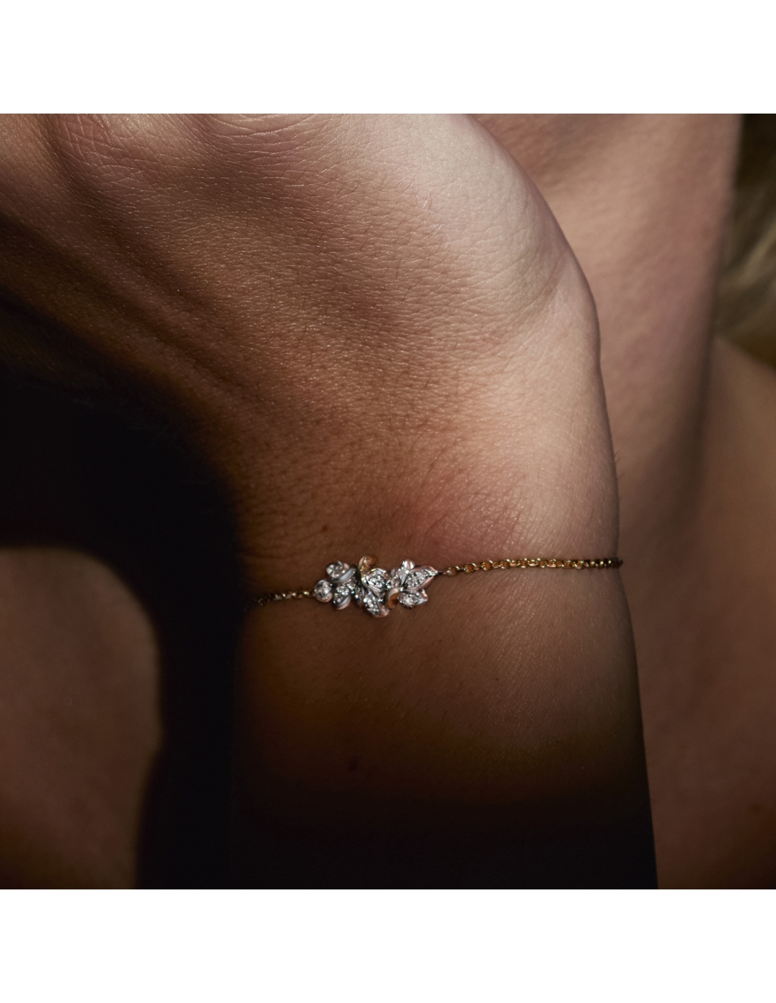 Bracciale realizzato a mano, esclusivamente nel laboratorio de' Nobili, in oro bianco e giallo 18kt con diamanti taglio brillante di qualità F-VVS.