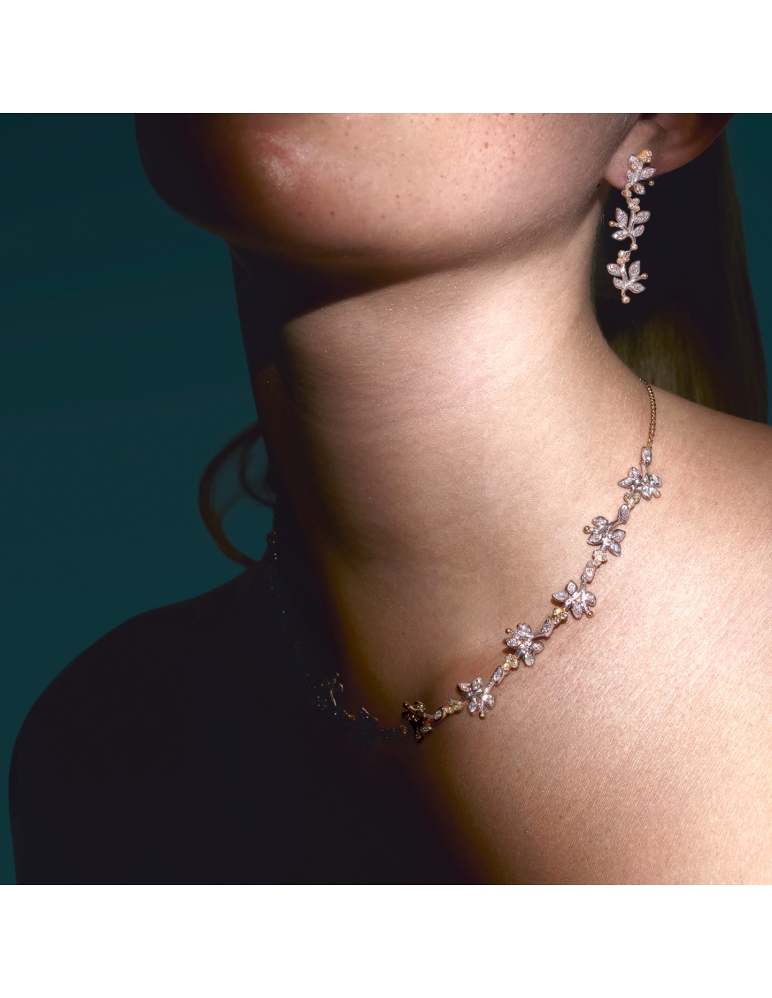 Collier in oro bianco e giallo 18kt con diamanti taglio brillante.