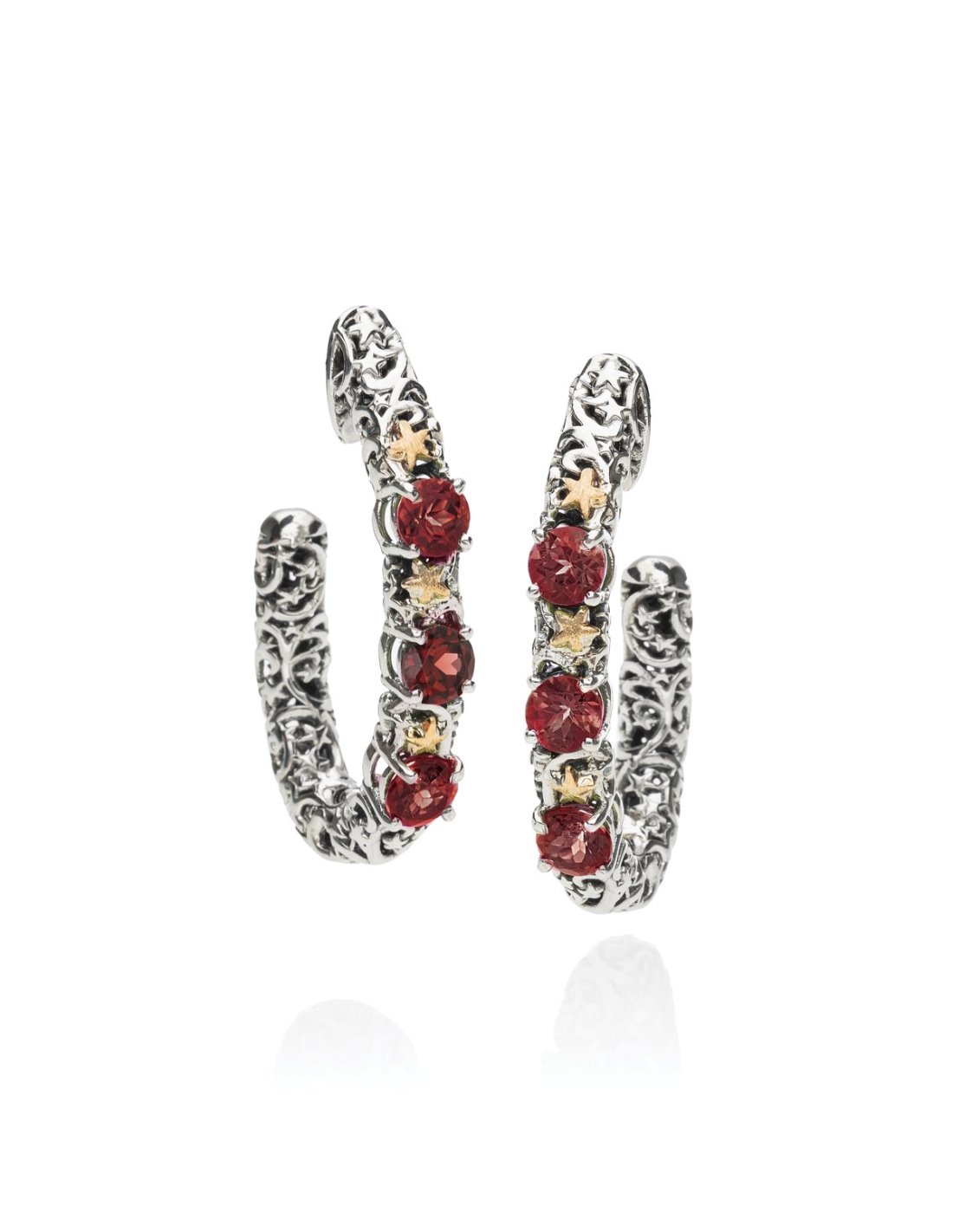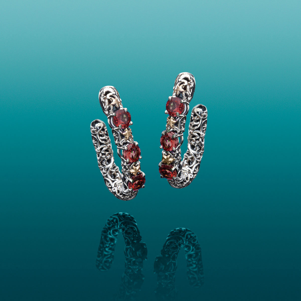 Orecchini realizzati a mano, esclusivamente nel laboratorio de' Nobili, in argento 925 e oro rosa 9kt con semipreziosi.