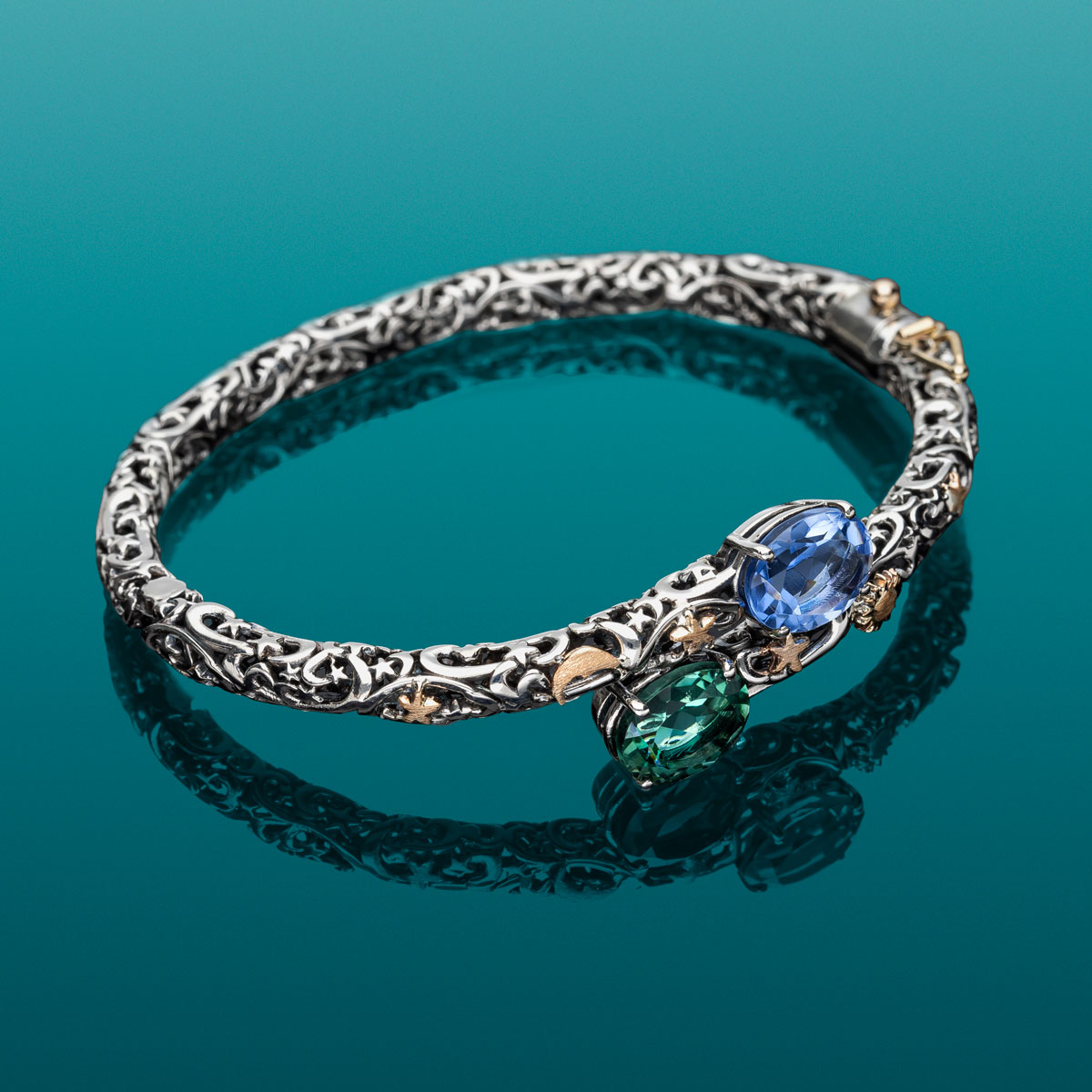 100Bracciale realizzato a mano, esclusivamente nel laboratorio de' Nobili, in argento 925 e oro rosa 9kt con quarzi idrotermali taglio ovali.