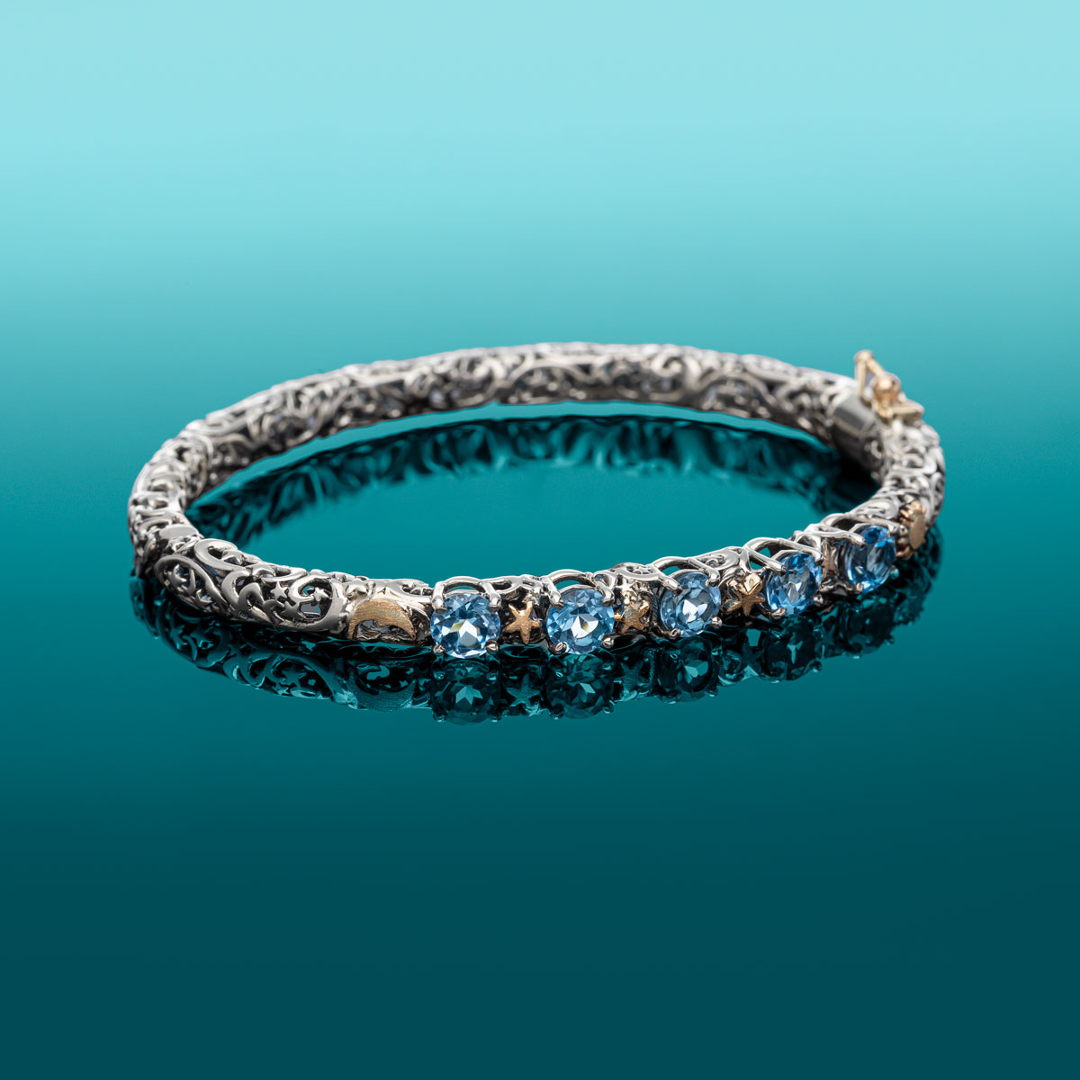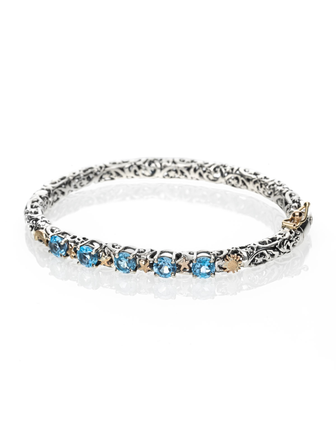 Bracciale realizzato a mano, esclusivamente nel laboratorio de' Nobili, in argento 925 e oro rosa 9kt con semipreziosi.