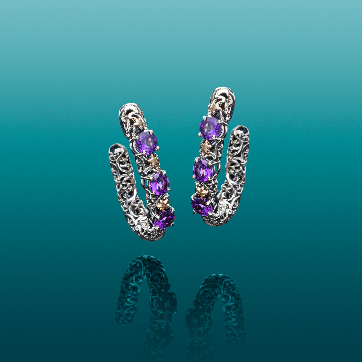 Orecchini realizzati a mano, esclusivamente nel laboratorio de' Nobili, in argento 925 e oro rosa 9kt con semipreziosi.