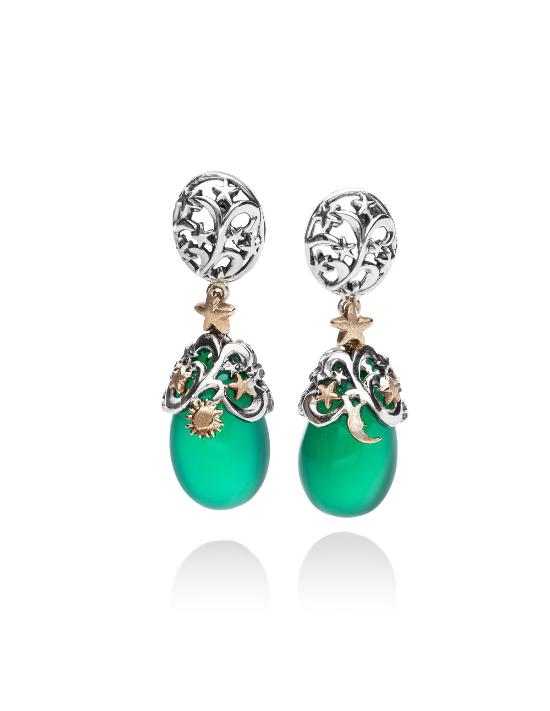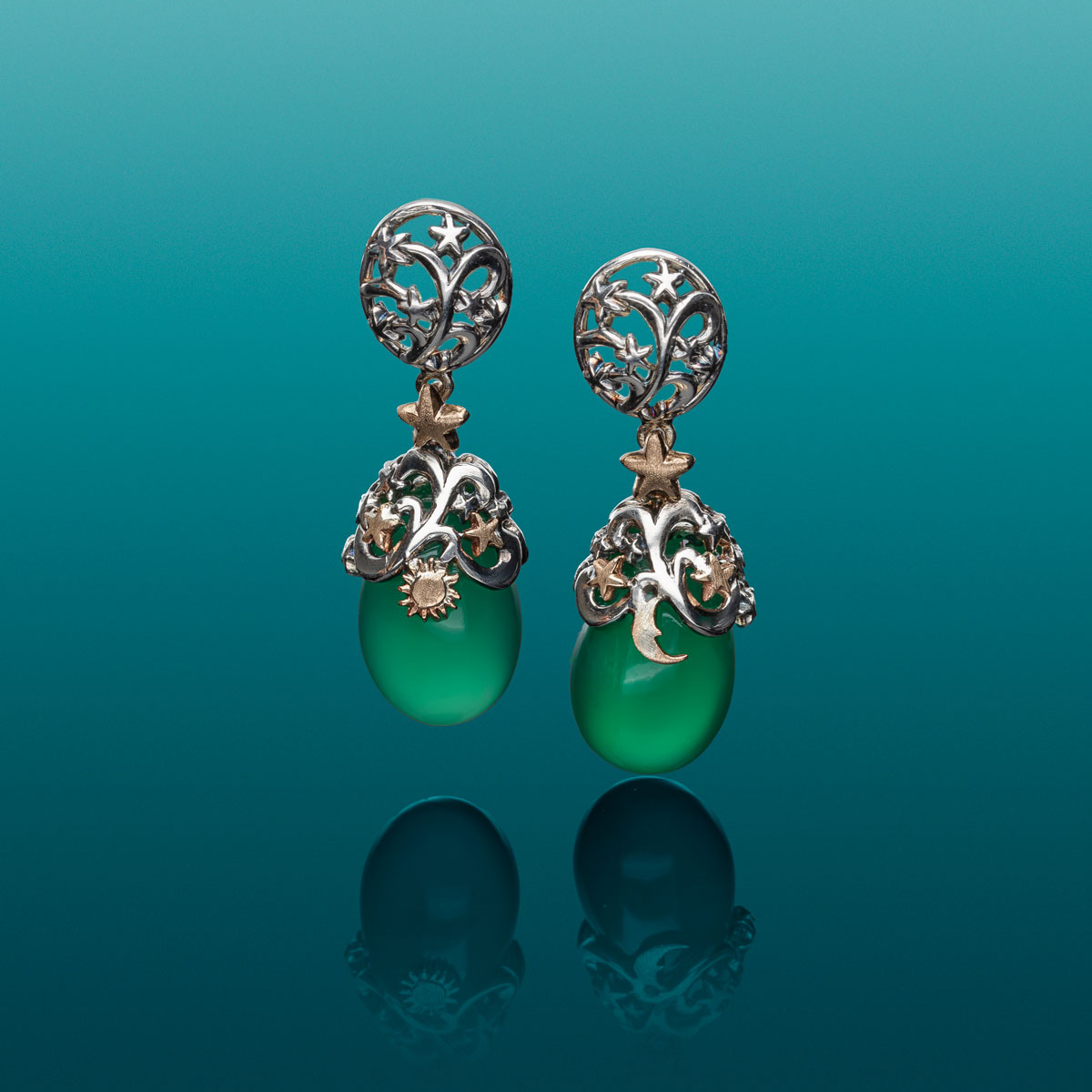 Orecchini realizzati a mano, esclusivamente nel laboratorio de' Nobili, in argento 925 e oro rosa 9kt con gocce di agata.