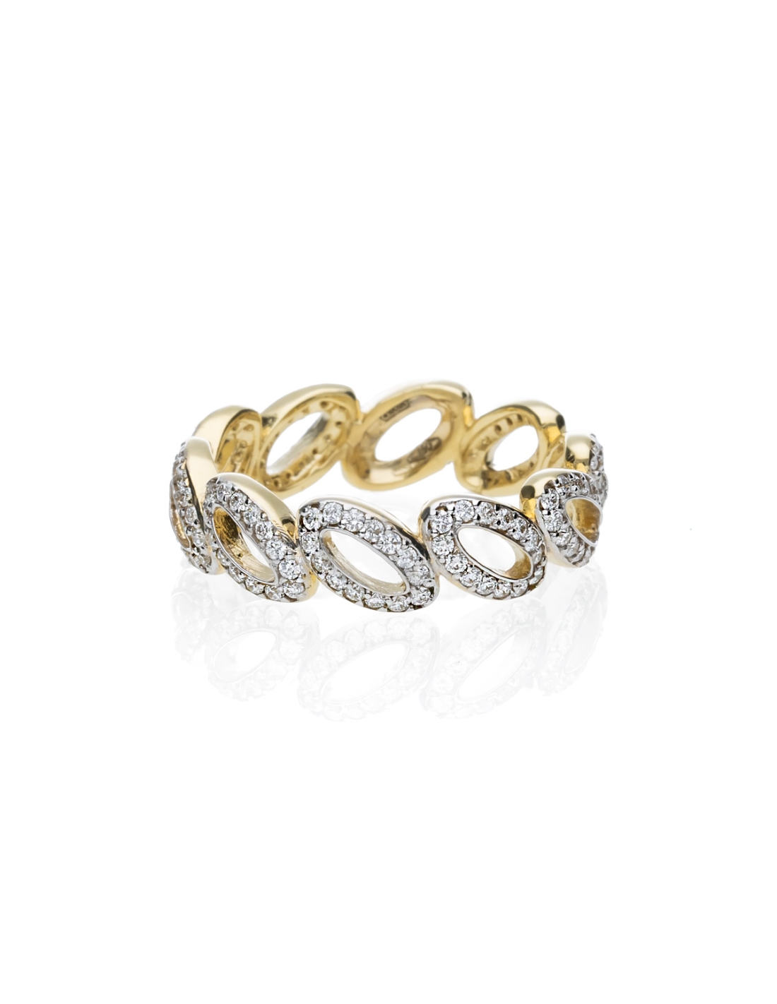 Anello realizzato a mano, esclusivamente nel laboratorio de' Nobili, in oro bianco e giallo 18kt con diamanti taglio brillante di qualità F-VVS .