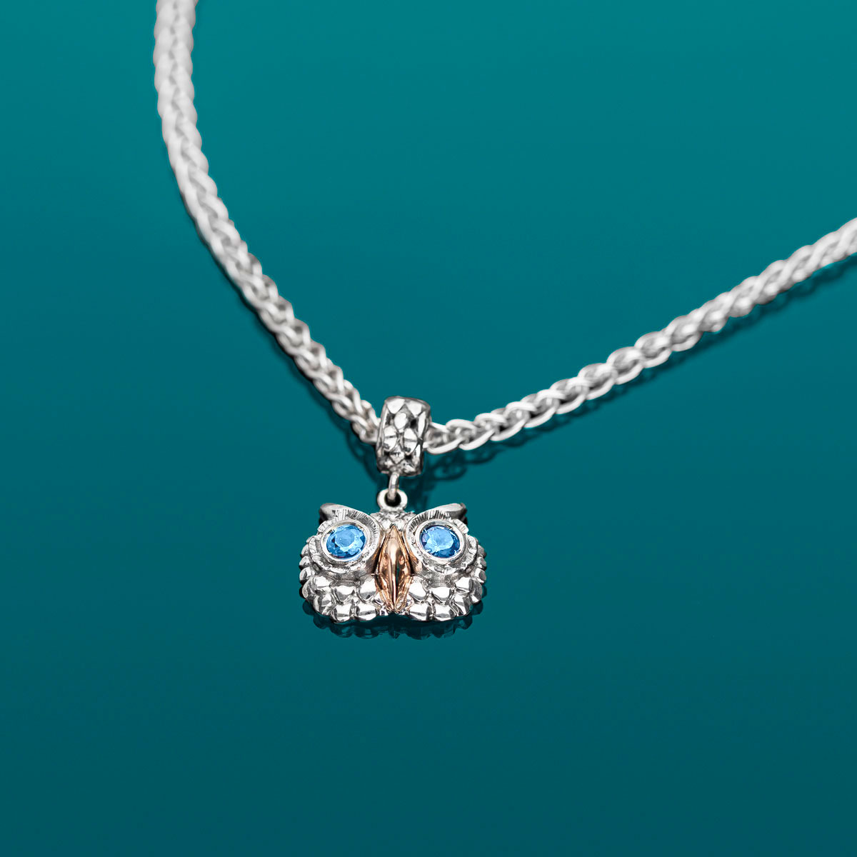Ciondolo realizzato a mano, esclusivamente nel laboratorio de' Nobili, in argento e oro rosa 9kt con semipreziosi: gialli, viola, azzurro, verde, fumè, rosso.