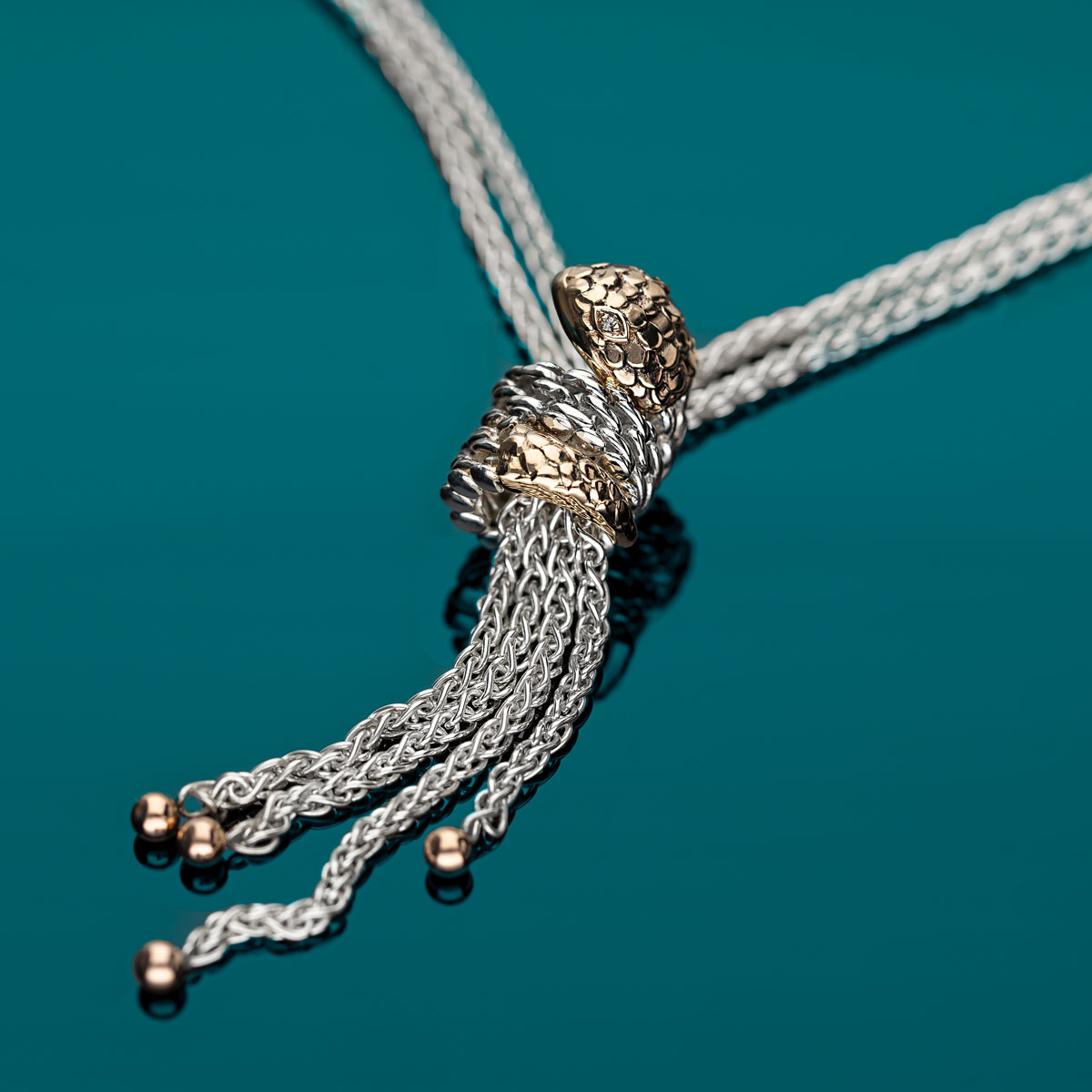 Collana in oro rosa 9kt e argento, con diamanti brown.